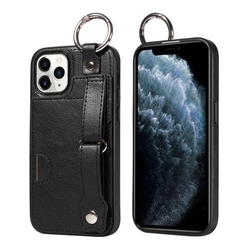 Funda para Teléfono iPhone 11 Pro con Anillo y Ranura para Tarjeta con Textura de Pantorrilla (Negro)