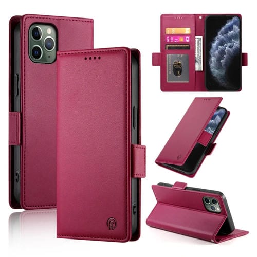Funda para teléfono iPhone 11 Pro Cuero Esmerilado Magnético con Hebilla Lateral (Rojo Vino)