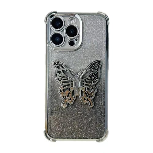 Funda para Teléfono TPU iPhone 11 Pro Mariposa 3D Purpurina Galvanizada (Plata Degradada)