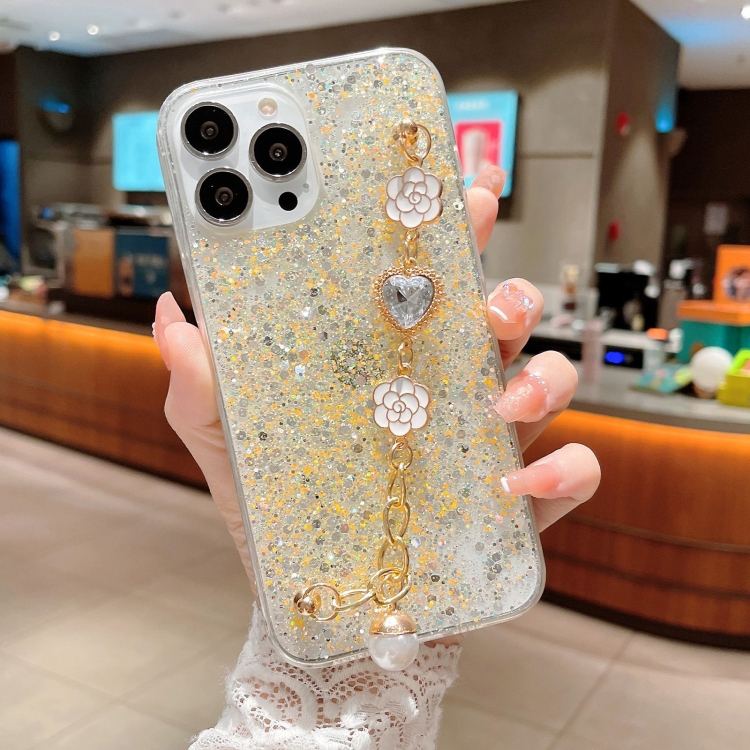Funda para Teléfono iPhone 11 Pro TPU Epoxi con Cadena de Gemas y Lentejuelas Estrelladas (Amarillo)