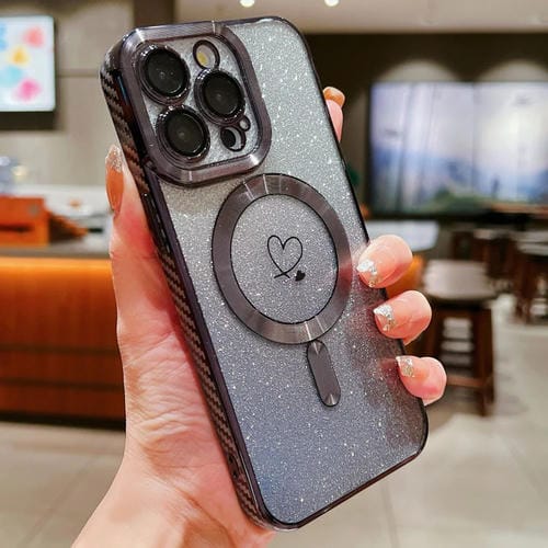 Funda para teléfono iPhone 11 Pro Loves Gradient Glitter Fibra de Carbono Magsafe TPU (Negro)