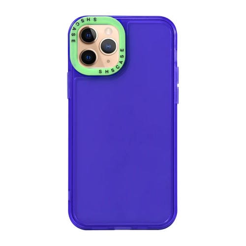Marco de Lente de Contraste de Color para iPhone 11 Pro Caja de Teléfono de TPU Transparente (Púrpura + Verde)