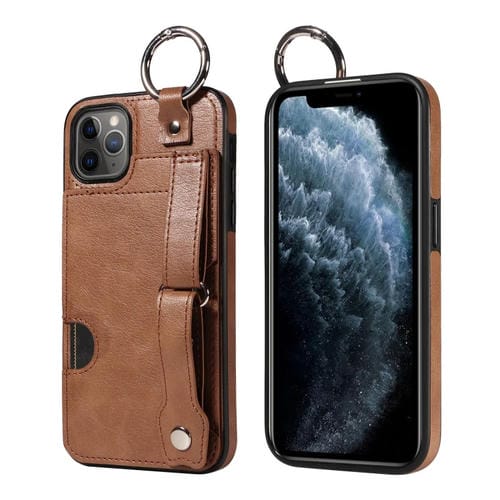 Caja del Teléfono iPhone 11 Pro Max con Anillo y Ranura para Tarjeta con Textura de Pantorrilla (Marrón)