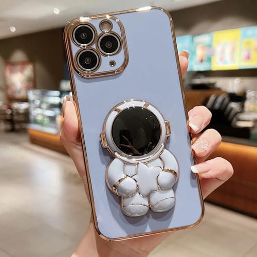 For iPhone 11 Pro Max Embrace Stars Phone Case with Electroplated Astronaut Holder (Blue)