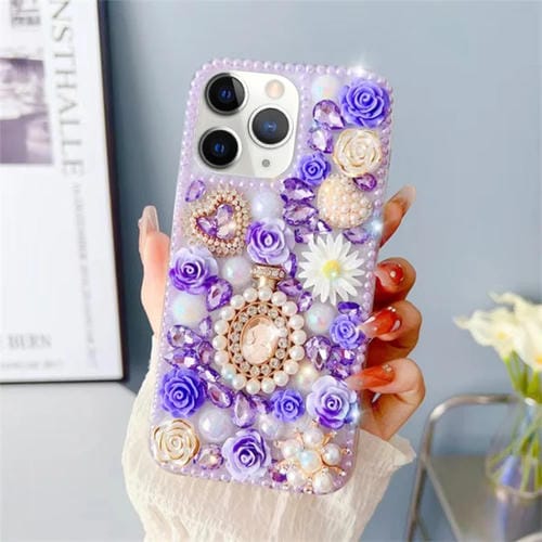 Estuche para teléfono iPhone 11 Pro Max con rosa e incrustaciones de diamantes (Púrpura)