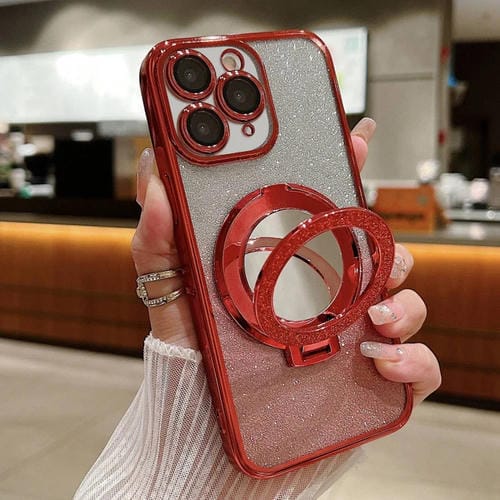Estuche para Teléfono iPhone 11 Pro Max Magsafe Soporte Espejo Plateado Brillo Degradado (Rojo)