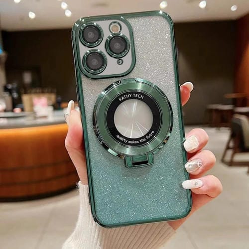 Estuche para Teléfono iPhone 11 Pro Max Magsafe con Soporte Galvanizado y Brillo Degradado (Verde)