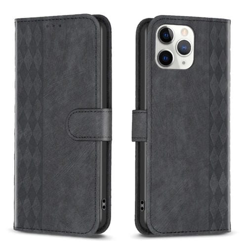 Funda de teléfono iPhone 11 Pro Max cuero en relieve a cuadros (Negro)