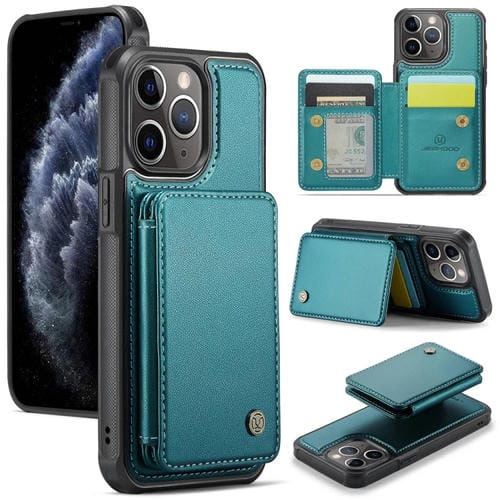 Estuche para Teléfono Jeehood J05 para iPhone 11 Pro Max Cuero Rfid Magnético Empresarial (Azul Verde)