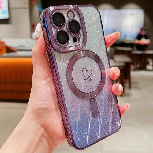 Estuche para Teléfono iPhone 11 Pro Max Loves Leaves Magsafe TPU Brillo Degradado Fibra de Carbono (Púrpura)
