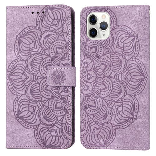 Funda para iPhone 11 Pro Max Mandala Cuero con Tapa en Relieve (Púrpura)