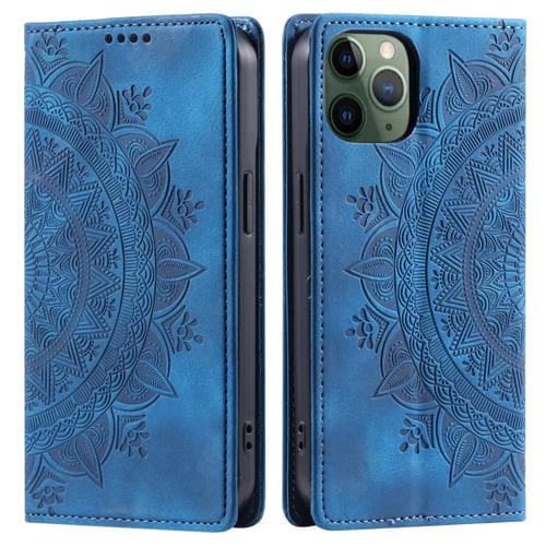 Funda de Cuero Magnética para iPhone 11 Pro Max Totem En Relieve (Azul)