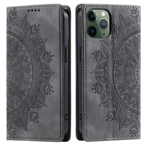 Funda para iPhone 11 Pro Max Totem Cuero Magnética En Relieve (Gris)