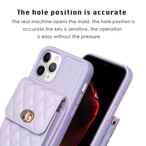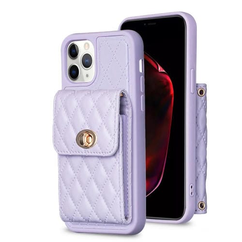 For iPhone 11 Pro Max Vertical Metal Buckle Wallet Rhombic Leather Phone Case (Purple)
