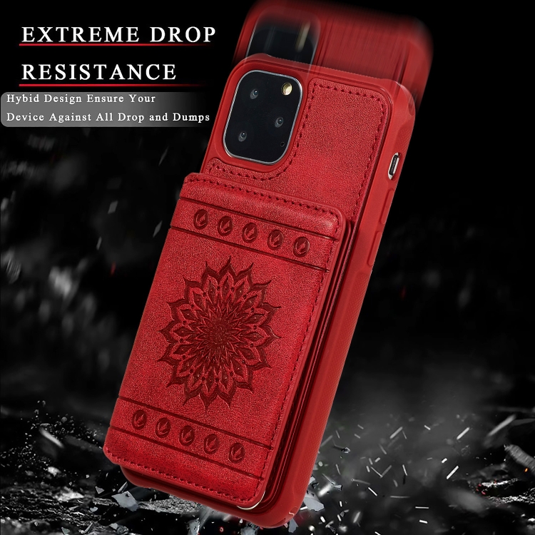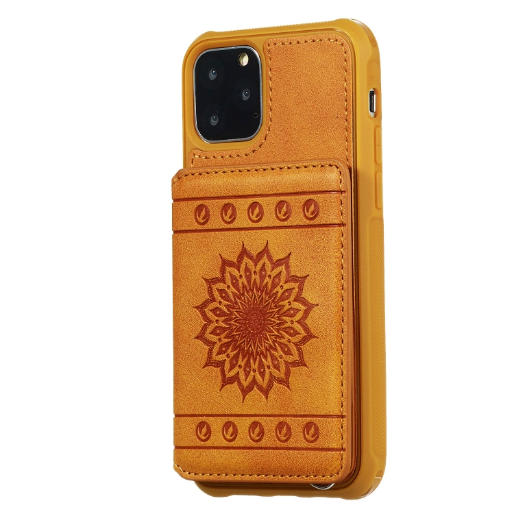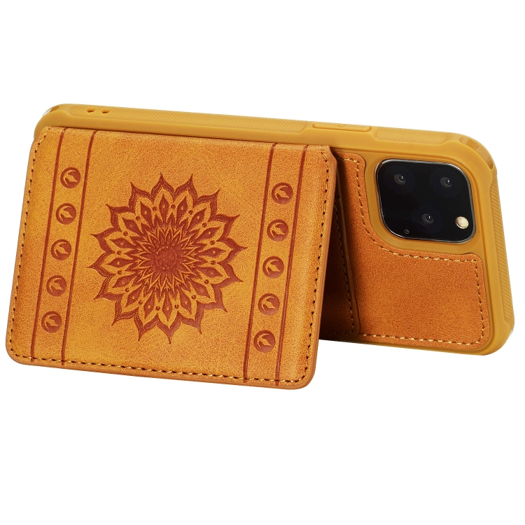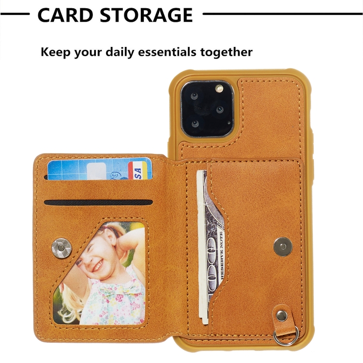 Funda para iPhone 11 Pro PU + TPU Estuche con Soporte Ranuras Tarjetas Marco Fotos Cordón (Marrón)