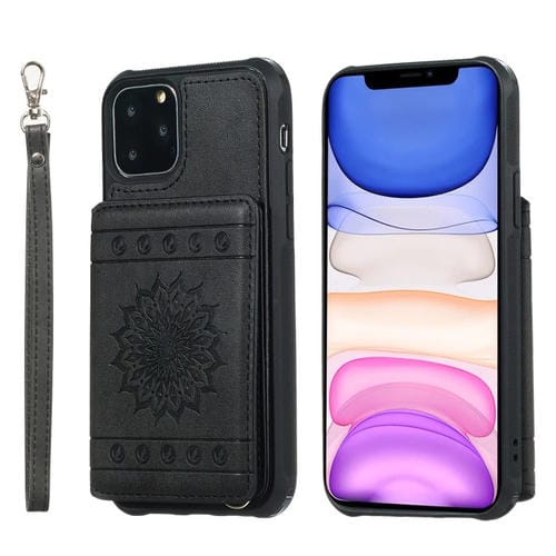 Estuche para iPhone 11 Pro PU + TPU con Soporte, Ranuras para Tarjetas, Marco de Fotos y Cordón (Negro)