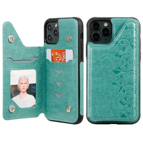 Estuche Protector Six Cats para iPhone 11 Pro con Patrón En Relieve, Soporte, Ranuras para Tarjetas y Marco de Fotos (Verde)