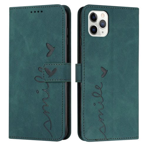For iPhone 11 Pro Skin Feel Heart Pattern Leather Phone Case (Green)