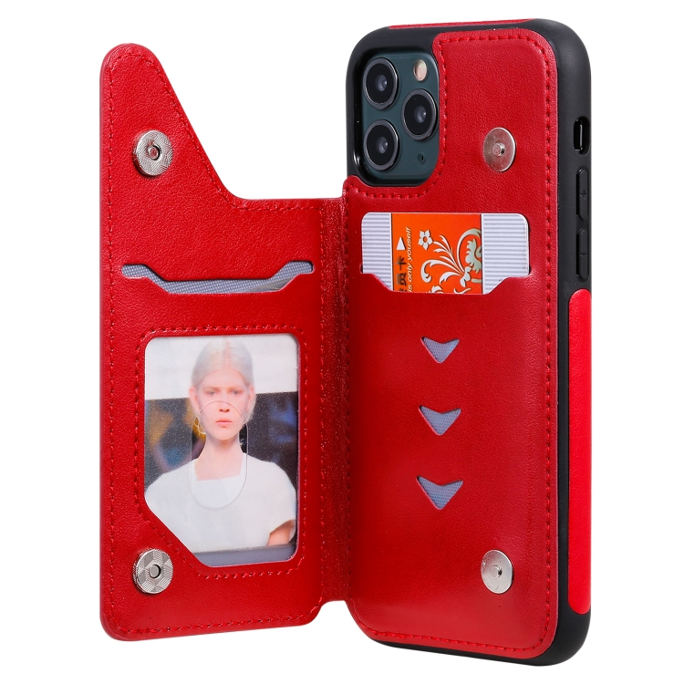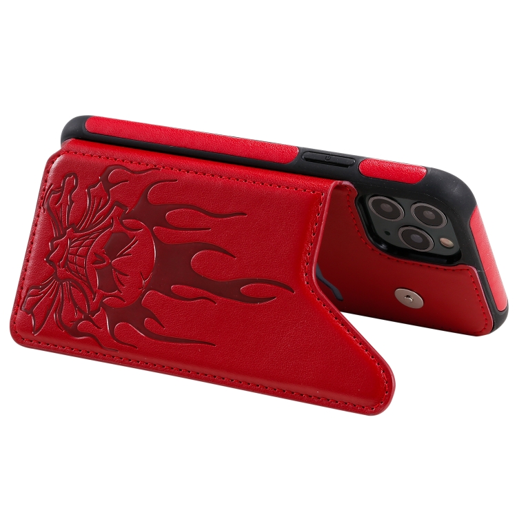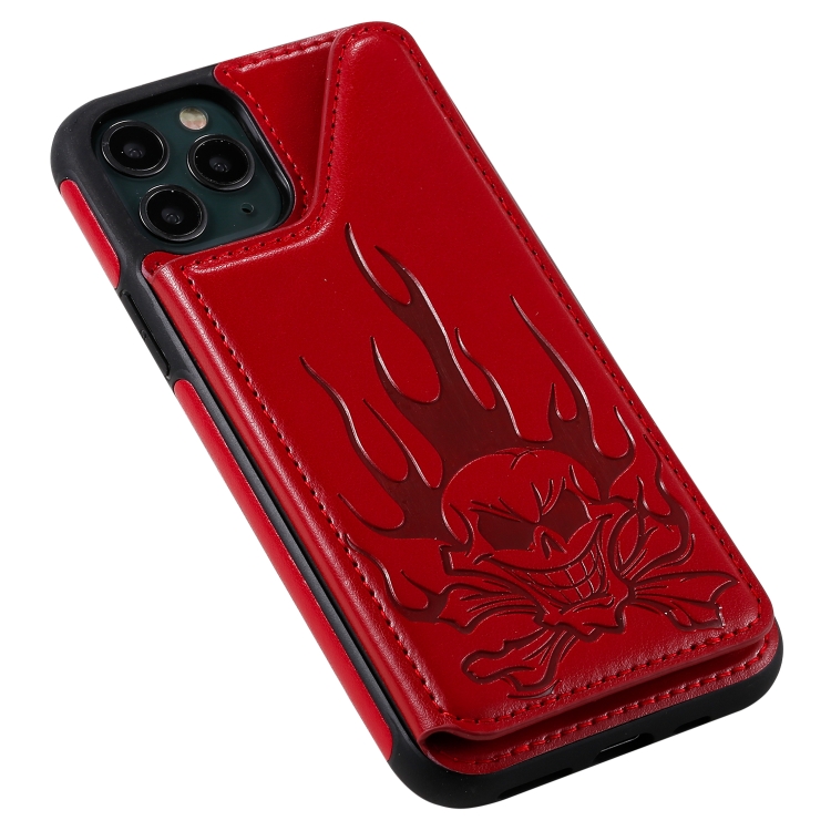 Estuche Protector para iPhone 11 Pro Skull Head Embossing a Prueba de Golpes con Soporte y Ranuras para Tarjetas (Rojo)