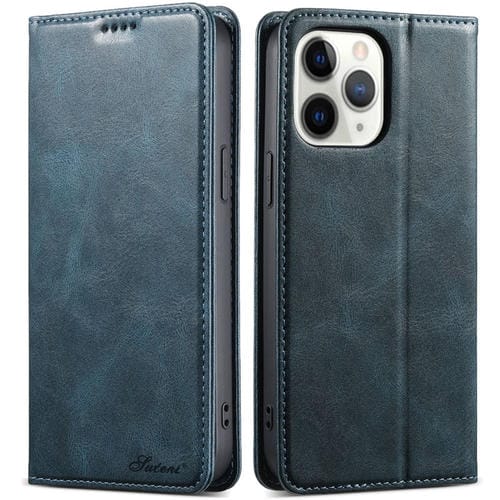 Funda para Teléfono Suteni J02 para iPhone 11 Pro con Billetera de Cuero de Cera de Aceite (Azul)
