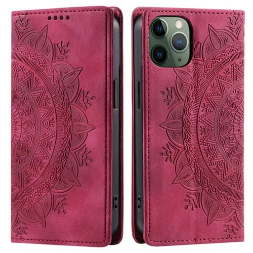 Funda de Teléfono iPhone 11 Pro Totem Cuero Magnético En Relieve (Rojo)