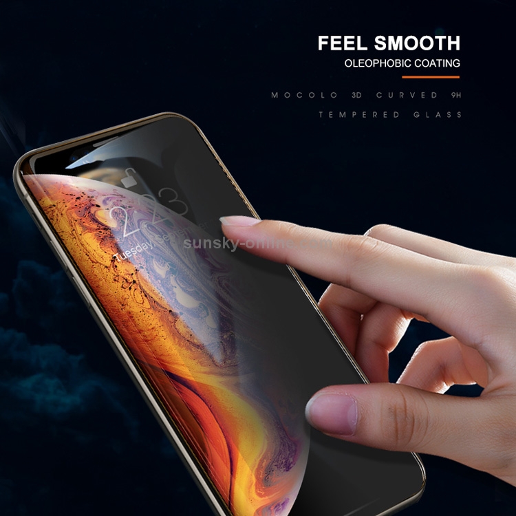 For iPhone 11 Pro / XS / X mocolo 0.33mm 9H 3D Round Edge Privacy Anti-Glare Tempered Glass Film (Black)
