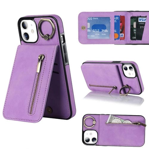Funda para iPhone 11 Retro Ring y Zipper Rfid Card Slot (Púrpura)