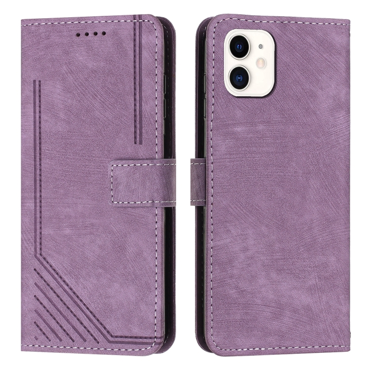 Funda para iPhone 11 Skin Feel Stripe Pattern de Cuero con Cordón (Púrpura)
