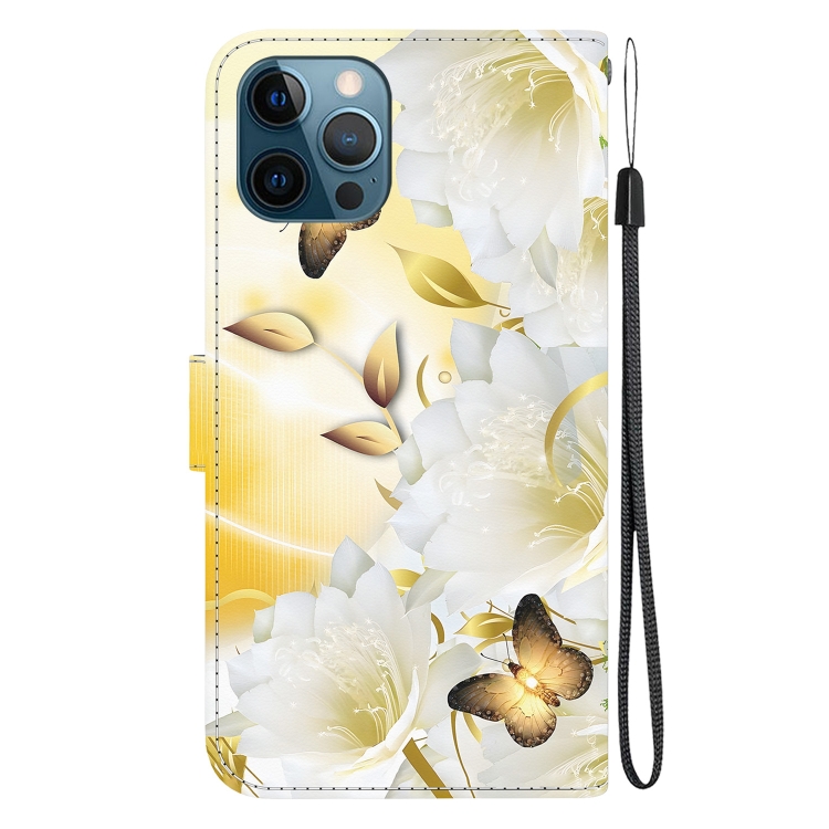 Funda para Teléfono iPhone 12/12 Pro Cuero Dibujo Coloreado Textura de Cristal (Epiphyllum de Mariposa Dorada)