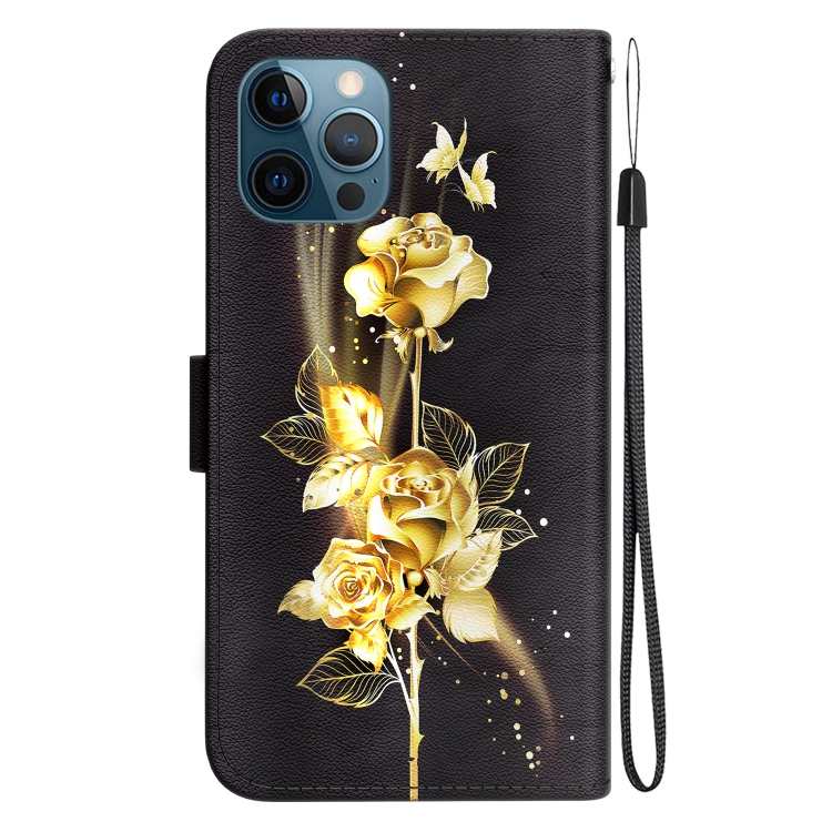Funda para teléfono iPhone 12/12 Pro cuero dibujo coloreado textura cristal (Mariposa Dorada Rosa)