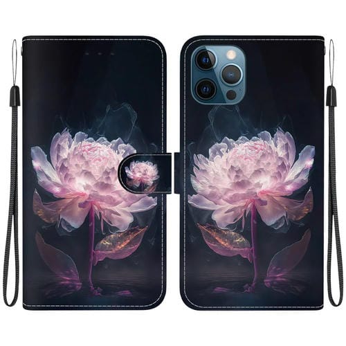 Funda para Teléfono iPhone 12/12 Pro Cuero Dibujo Coloreado Textura de Cristal (Peonía Púrpura)