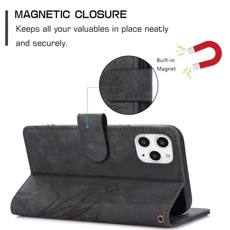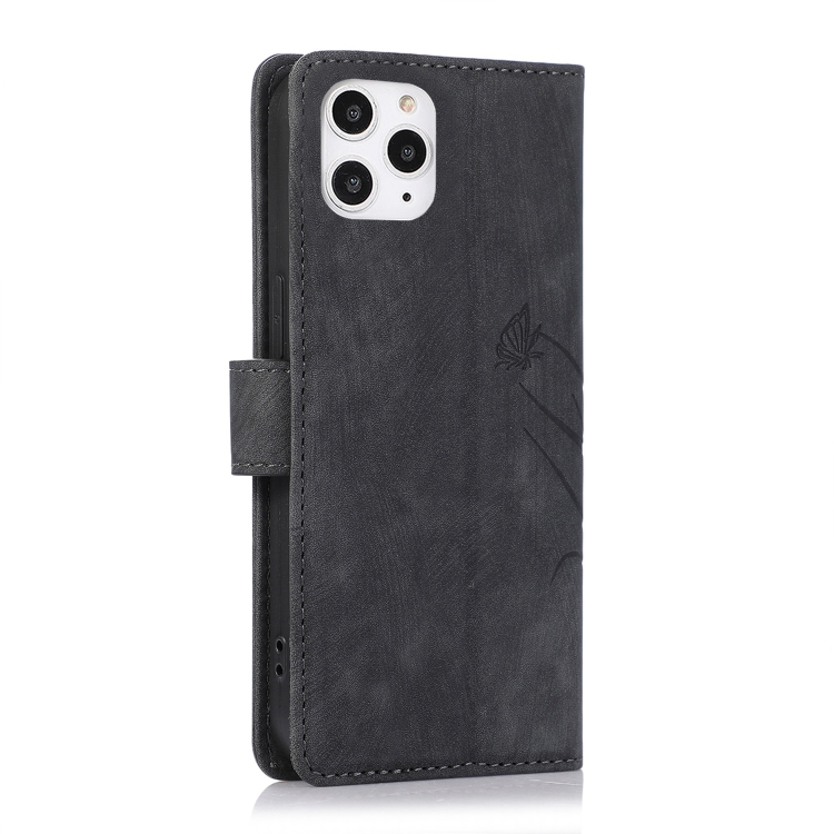 Funda para Teléfono iPhone 12/12 Pro Cuero Relieve Mariposa Orquídea (Negro)