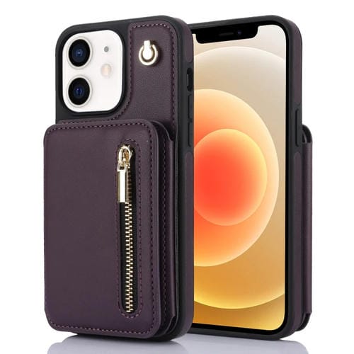 Estuche para Teléfono Ym006 para iPhone 12/12 Pro con Bolsa para Tarjetas Cremallera y Cordón Doble (Púrpura Oscuro)