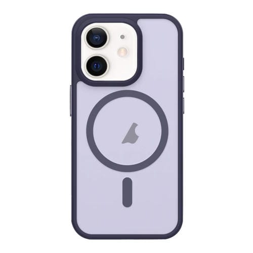 Estuche para teléfono iPhone 12 Magsafe Botón de Metal Sensación de Piel Mate a Prueba de Golpes (Púrpura)