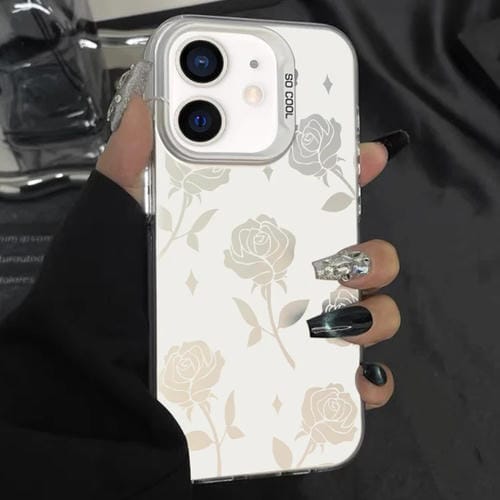 Caja de Teléfono Híbrida TPU para PC para iPhone 12 con Pintura Plateada (Blanco Rosa Hueco)