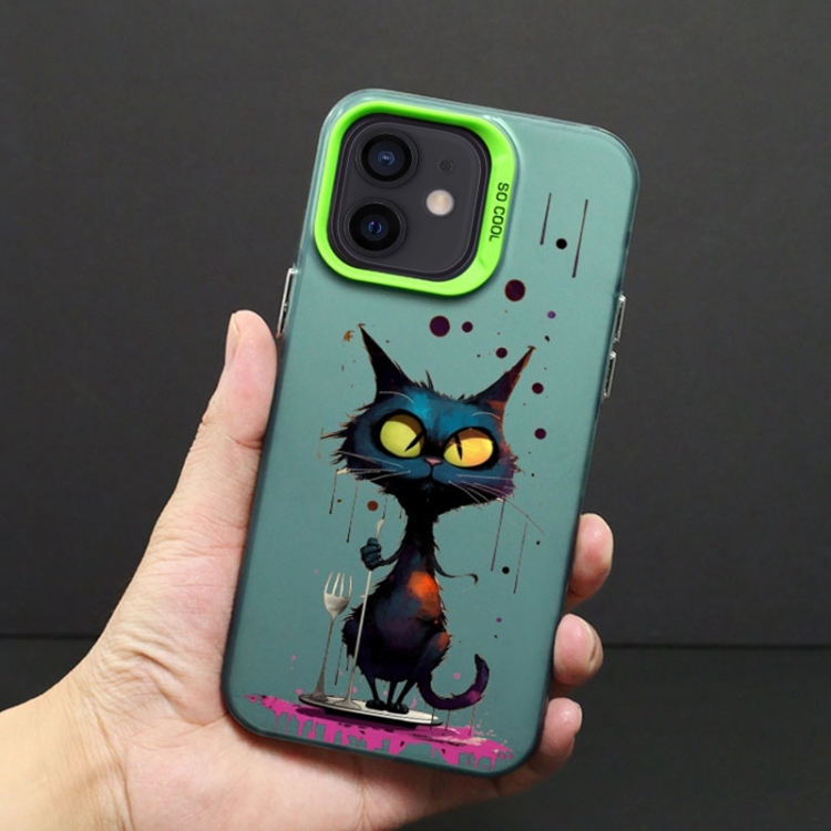 Funda para iPhone 12 Color Ink Frosted PC y Estuche TPU Gato Negro
