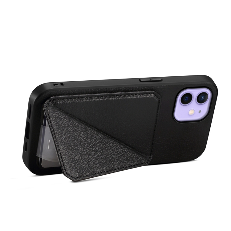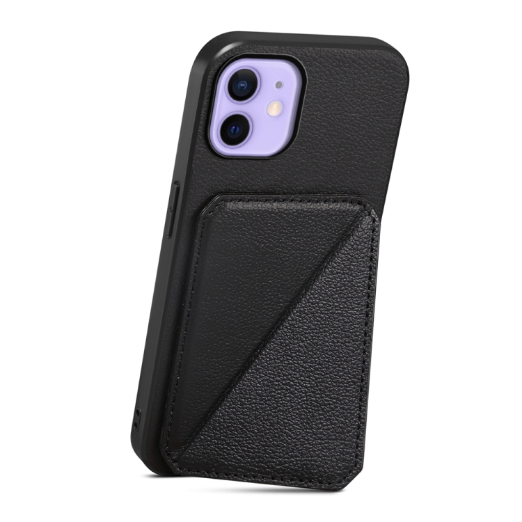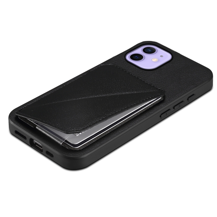 Funda para Teléfono iPhone 12 D04 con Ranura para Tarjeta Dual Textura de Becerro (Negro)