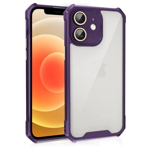 Estuche Acrílico para Teléfono iPhone 12 a Prueba de Golpes con Película de Vidrio para Lentes (Púrpura)