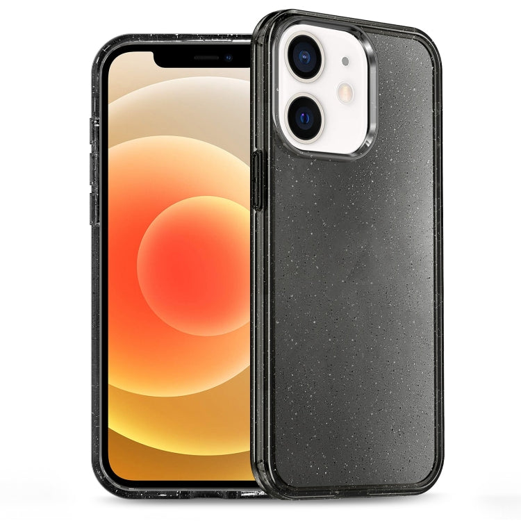 For iPhone 12 Hybrid Phone Case with PC Glitter Powder TPU (Black)