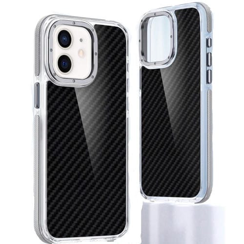 For iPhone 12 Dual-color Carbon Fiber Acrylic TPU Hybrid Phone Case(Gray)
