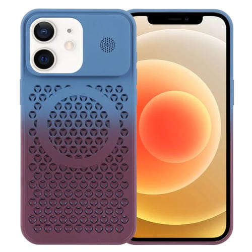 For iPhone 12 Magnetic Phone Case Aromatherapy Cooling Honeycomb Case (Blue Red)