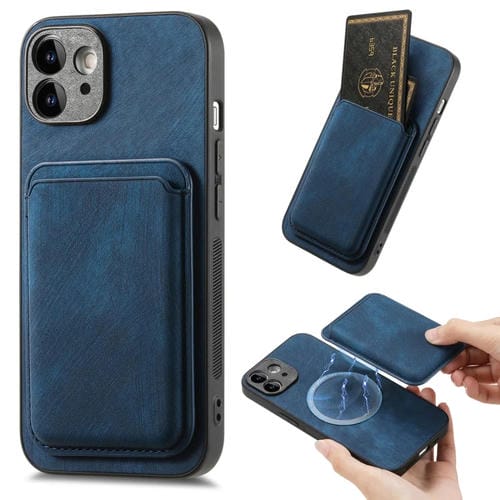 Funda Magnética para Teléfono iPhone 12 con Bolsa de Tarjeta de Cuero Retro (Azul)