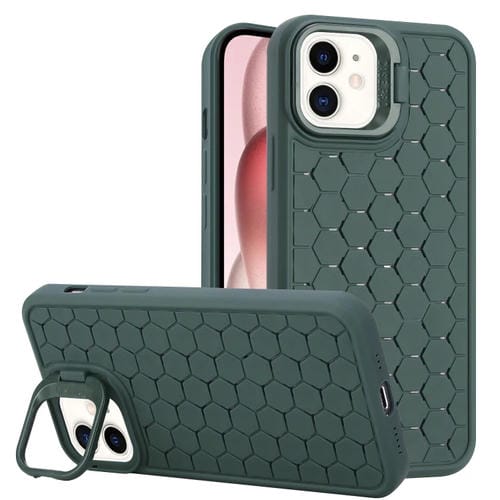 Funda para Teléfono TPU para iPhone 12 con Soporte para Lente Radiante de Panal (Verde)