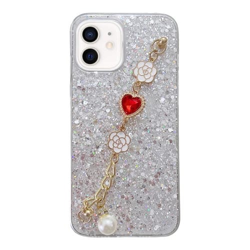 Funda para Teléfono TPU Epoxi iPhone 12 con Cadena de Gemas y Lentejuelas Estrelladas (Plateado)