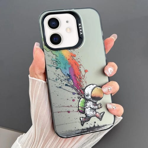 Funda para Teléfono iPhone 12 Imd Animal Graffiti TPU + PC Doble Cara (Astronautas Corriendo)