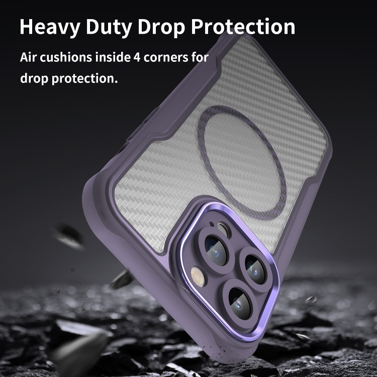 For iPhone 12 MagSafe Translucent Phone Case with Carbon Fiber Texture (Purple)