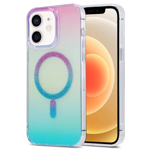For iPhone 12 Magic Diamond Blu-ray MagSafe Phone Case (Purple Blue Gradient)