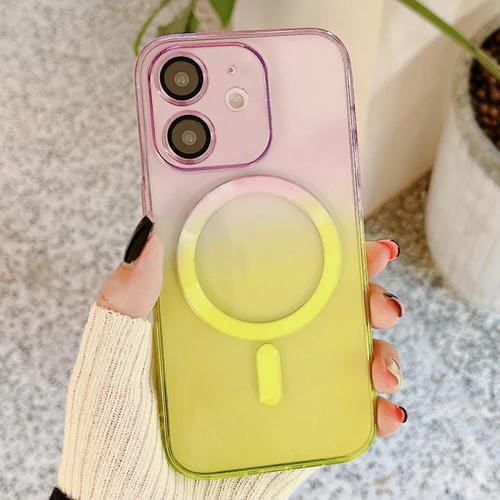 Funda para iPhone 12 Magsafe Magnetic TPU con Caja Acrílica Degradada (Amarillo Púrpura)
