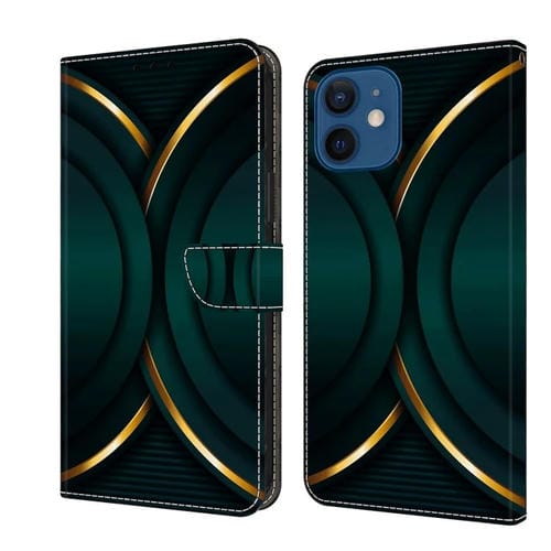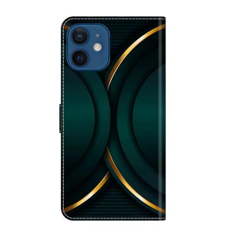 Funda Protectora de Cuero para iPhone 12 Mini y 13 Mini Crystal 3D a Prueba de Golpes (Contorno Dorado)