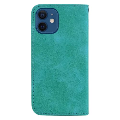 Funda de teléfono iPhone 12 Mini 7 En forma de cuero en relieve (Verde)